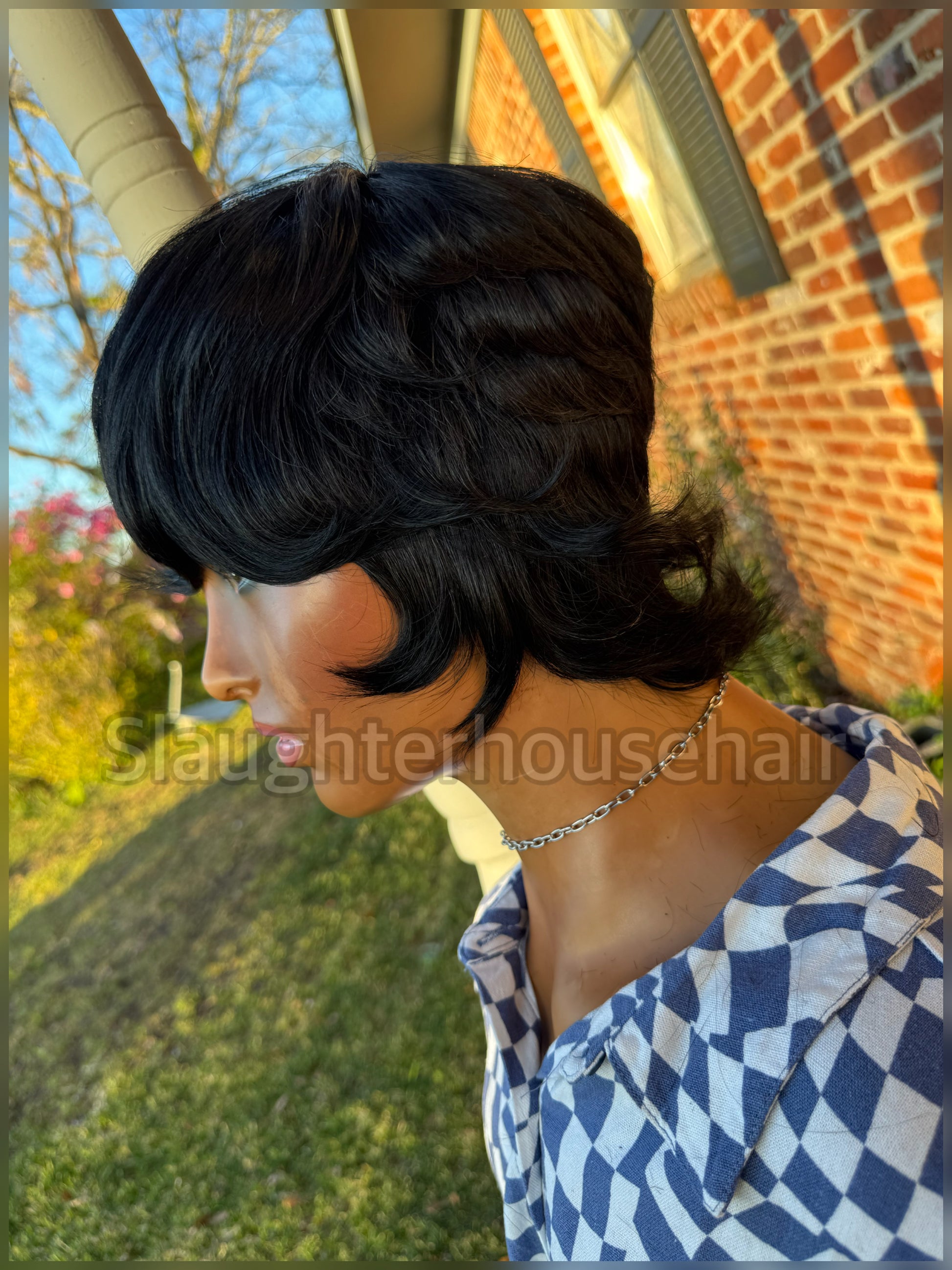 Due to the customization of this Unit , No 2 units will be exact the same. Please note that the bangs of each unit may have to be cut to frame the customer face. Bang area may be longer because each person face frame is made different. Hair will not be curled in the back because style will not stay like this while traveling